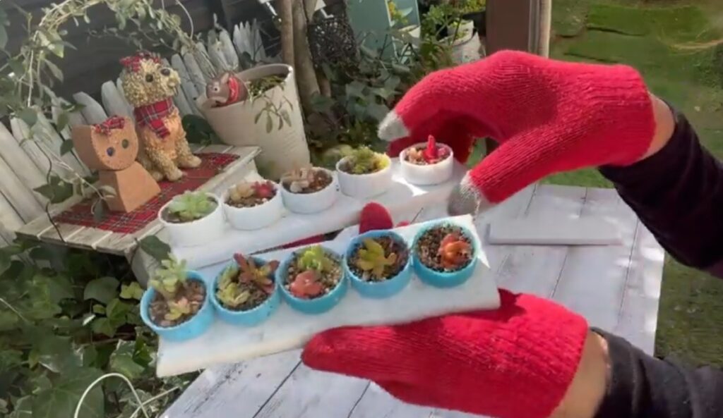 今では小さなガーデンのあちらこちらで、ペットボトルのフタは赤ちゃん多肉の居場所になりました。