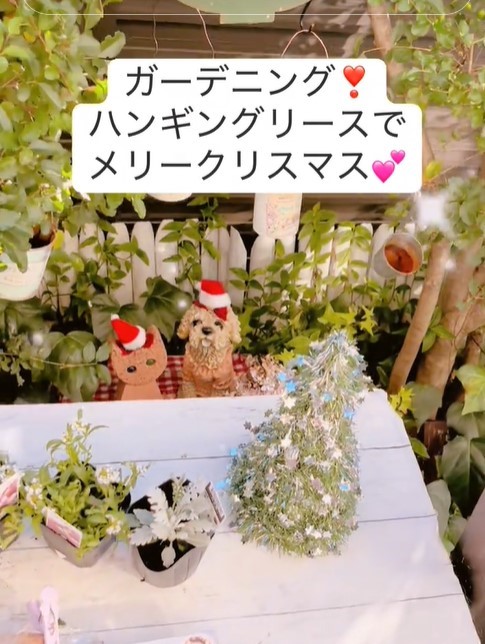 12月のクリスマスシーズン、小さな庭でハンキングリース作りをしました。