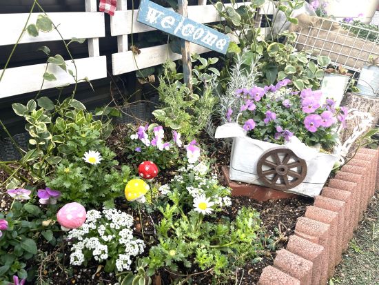 【春の小さなガーデン】多肉と小鳥と春の花壇